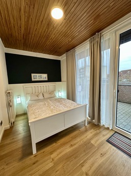 Schlafzimmer mit Doppelbett (1,40x2,00) und Terrassenzugang